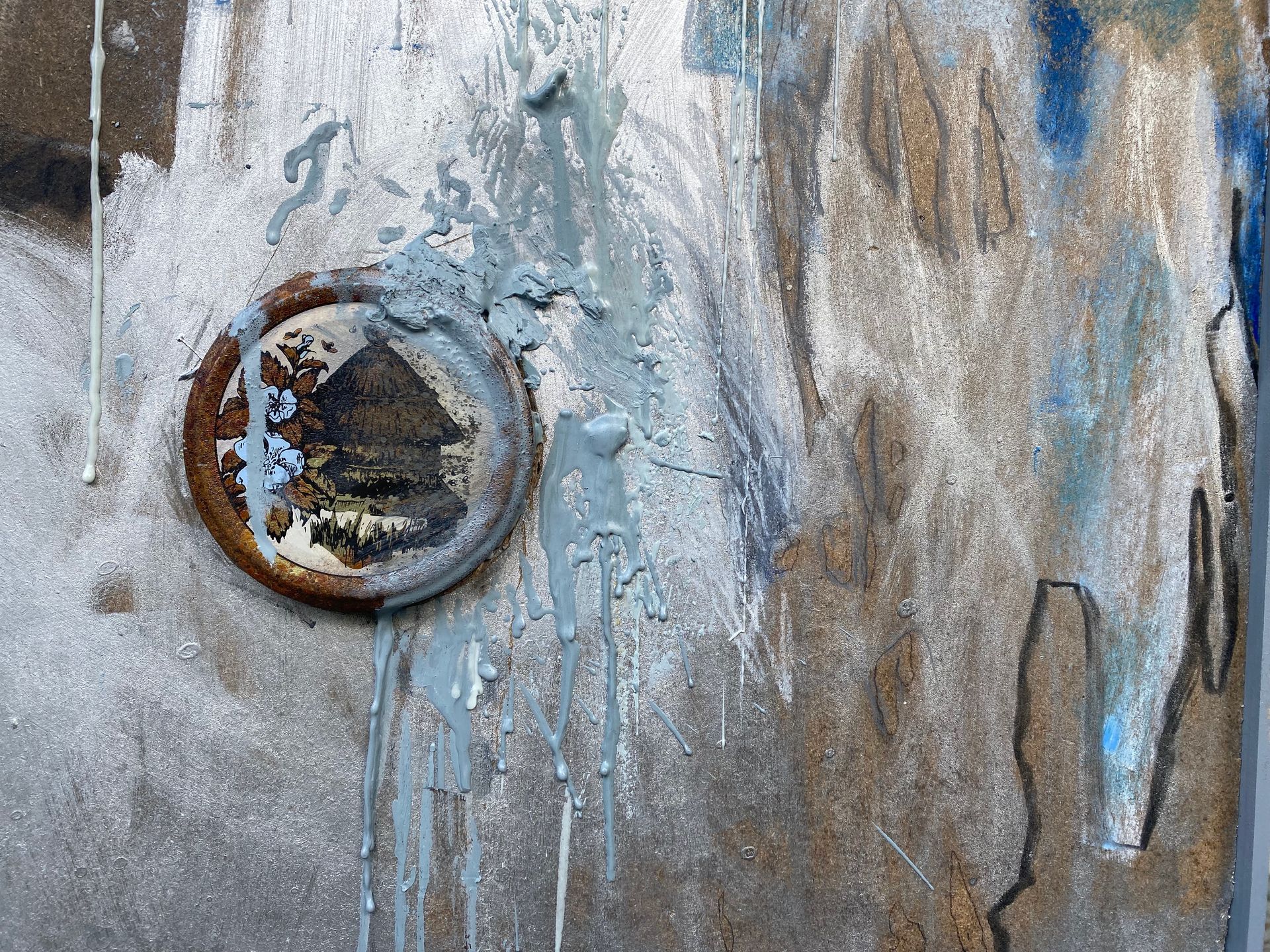 "A (...) mix of techniques also determines Evelyn Taylor-Kopp's works on paper, which are created as small-format cabinet pieces but also as monumental large formats. (...) A special feature are "tapecopies" (...). This is a technique developed by the artist in which the graphite drawing is removed by means of adhesive tape and transferred to the picture support as a collage. (...) Fascinating image collages are always created in the process, the complexity of which only gradually reveals itself to the viewer."